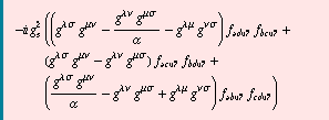 BackgroundGluonVertex[{p,mu,a}, {q,nu,b}, {k,la,c}] or BackgroundGluonVertex[ p,mu,a , q,nu,b , k,la,c ] yields the 3-gluon vertex in the background field gauge, where the first set of arguments corresponds to the external background field. BackgroundGluonVertex[{p,mu,a}, {q,nu,b}, {k,la,c}, {s,si,d}] or BackgroundGluonVertex[{mu,a}, {nu,b}, {la,c}, {si,d}] or BackgroundGluonVertex[p,mu,a , q,nu,b , k,la,c , s,si,d] or BackgroundGluonVertex[ mu,a , nu,b , la,c , si,d ] yields the 4-gluon vertex, with {p,mu,a} and {k,la,c} denoting the external background fields. The gauge, dimension and the name of the coupling constant are determined by the options Gauge, Dimension and CouplingConstant. The Feynman rules are taken from L.Abbot NPB 185 (1981), 189-203; except that all momenta are incoming. Note that Abbots coupling constant convention is consistent with the default setting of GluonVertex.