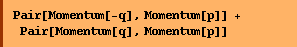 Pair[x, y] is the head of a special pairing used in the internal representation: x and y may have heads LorentzIndex or Momentum. If both x and y have head LorentzIndex, the metric tensor is understood. If x and y have head Momentum, a scalar product is meant. If one of x and y has head LorentzIndex and the other Momentum, a Lorentz vector