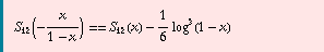 SimplifyPolyLog[y] performs several simplifications assuming that the variables occuring in the Log and PolyLog functions are between 0 and 1.
